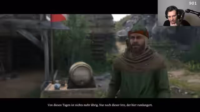 01:49:39Der Streamer erwähnt, seit Beginn des Spiels noch nicht in einem Badehaus gewesen zu sein und dass sich um den Wilderer gekümmert wurde, der nun abgehauen ist. Er nimmt eine Quest an, um einen Wilderer am Wittlackteich zu finden, wobei das Gebiet als groß und bergauf beschrieben wird. Der Streamer kommentiert seinen Helm als die neueste Helmmode aus Paris, die er von einem Helmverkäufer erworben hat. Er befragt einen Gerber nach Fällen und verdächtigen Leuten im Wald, da der Jäger ein Säufer und sein Sohn ein Nichtsnutz ist, was die Herkunft der vielen Fälle in Frage stellt. Er besucht die Frau des Fischers, die den Gerber verdächtigt, mit jemandem im Hexenhain unter einer Decke zu stecken und dort Hirschfälle zu verstecken. Die Nachbarin ist neidisch auf den Gerber und vermutet, dass er wildert und etwas in seiner Werkstatt versteckt. Der Streamer versucht, in die Werkstatt einzubrechen, findet aber nur Fälle und nichts Auffälliges.