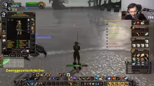 06:03:53Heiltränke-Brauen wird zum Kernanliegen, nachdem leere Fiolen knapp werden. Der Streamer plant, Stäbe zu leveln und erwägt Krabben als Pets für den 'Mime'-Aspekt. Klassen-Präferenzen werden mit der Community geteilt – Demon Hunter (nicht in Classic) und Mage werden favorisiert. Finanzielle Aspekte von Ausbildungen (z.B. BAföG) werden kurz tangiert, bevor Angelquests (Fang von 'feinen Krebsbrocken') Frustration auslösen. Die Nostalgie des 'niemand weiß was'-Erkundens wird gelobt.