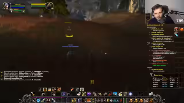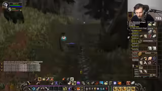 01:41:41Nach Quest-Abgabe reist der Streamer nach Darkshore, sucht nach einem Boss mit unklarem Spawn. Er priorisiert Überleben im Hardcore-Modus, vermeidet riskante Höhlen aufgrund von Traffic und Erfahrungsverlust. Diskussionen über Pet-Kontrolle (Folgen vs. Angreifen) und Inventarmanagement dominieren. Er plant den Wechsel zum nächsten Gebiet, findet aber keine Fleischverkäufer, was Fütterungsprobleme verschärft.