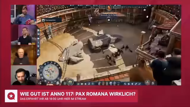 00:00:26Der Stream beginnt mit einer Ankündigung des bevorstehenden GameStar Talks zu Anno 117. Der Streamer erwähnt, dass um 18 Uhr das offizielle Review auf YouTube veröffentlicht wird und Drops gestartet werden. Er kündigt an, dass er sich in den GameStar-Stream einklinken wird und nach dem Talk wieder zu seinem eigenen Wechsel mit Anno 117 zurückkehrt. Es ist ein ereignisreicher Tag geplant, der mit einem Talk und einem anschließenden Speedrun im Kolosseum gefüllt sein wird.