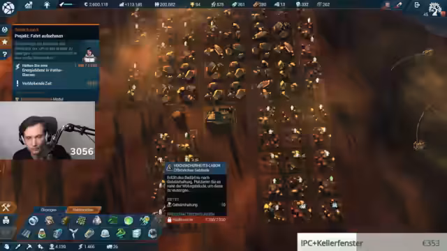 01:44:38Zu Beginn des Stream-Ausschnitts werden Diamanten erwähnt und ein Auftrag, Luxuskost aus dem Traumhafen zu produzieren. Der Fokus liegt auf der Erforschung des Mars und dem Bedarf an neuronalen Schaltkreisen. Während des Aufbaus wird eine Schildkuppel als besonders schön beschrieben. Die Stadt wird weiter ausgebaut, doch es kommt zu technischen Problemen: plötzlich ist die Bilanz tot und der Bau einer Siedlung ist sehr teuer.