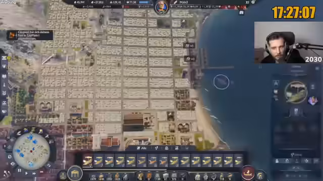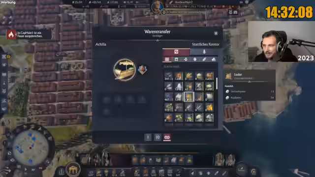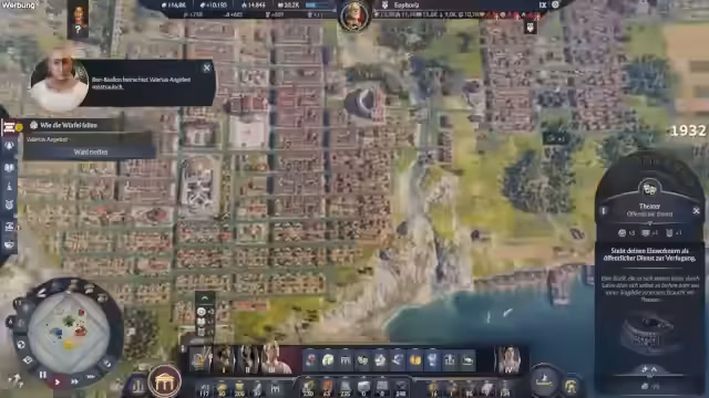 02:51:37Der Streamer befürchtet Aufstände der Bevölkerung, da die Stadt teilweise abbrennt. Die Olivenproduktion auf der zweiten Insel wird vorangetrieben, um Olivenöl herzustellen. Es wird festgestellt, dass Koop-Spiele aufgrund von Bugs aktuell nicht funktionieren. Diana Augusta wurde entdeckt und verlangt Bretter. Der Brand in der Stadt breitet sich aus, und es wird über die Dauer eines Lagerhausbrandes spekuliert. Es werden mehr Arbeitskräfte geschaffen, um den Verlust durch Brände und Krankheiten auszugleichen. Der Mangel an Arbeitskräften in einer der Städte wird thematisiert. Es wird überlegt, Albion nicht zu nutzen und stattdessen alles auf der Hauptinsel zu produzieren und den Rest einzukaufen. Die Integration von Produktionsgebäuden mit Bereichseffekten in die Stadt wird als sinnvoll erachtet, um Einkommen zu generieren. Die Möglichkeit, große Produktionen auszulagern, um Brandgefahren zu minimieren, wird ebenfalls diskutiert. Die langsame Produktion von Olivenöl bleibt eine Herausforderung.