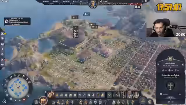 11:22:00Der Streamer feiert den Erhalt des Items „Brian, der vielfach Gesegnete“ und äußert seine Freude darüber. Die Zeit vergeht schnell, und es wird 4:45 Uhr morgens. Es wird über die Herausforderungen beim Finden bestimmter Items im Spiel gesprochen, die nicht käuflich sind und lange Forschungszeiten erfordern. Die Notwendigkeit einer besseren Item-Übersicht im Spiel wird betont. Die Diskussion kehrt zu Anno 117 zurück, wobei die Einsteigerfreundlichkeit des Spiels hervorgehoben und das eigene Review dazu empfohlen wird. Der Streamer plant, weitere Schiffe zu bauen und die Inseln zu versorgen, um die Produktion zu steigern. Das Reich beherbergt aktuell 174.000 Einwohner, und der Prokonsul-Titel wurde gewonnen. Der Counter für den Anno-Marathon wird bei 20 Stunden gestoppt, mit noch 97 verbleibenden Stunden. Der Streamer bedankt sich für die Unterstützung und kündigt an, später am Abend weiterzumachen, wobei er die Zuschauer zu einem anderen Streamer raidt, der Ark Raiders spielt.
