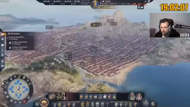 03:04:08Der Streamer besiedelt eine zweite Insel, um mehr Geld zu verdienen, und baut die nächste Stufe der Insel aus. Nach einem langen Brand in der Stadt beginnt der Wiederaufbau. Die langsame Geschwindigkeit des Spiels wird bemängelt, da das Kolosseum noch nicht gebaut ist. Latrinen und Neptuns Schrein wurden entdeckt, aber Beton fehlt noch. Die Olivenölproduktion ist extrem langsam, obwohl bereits vier Olivenhaine gebaut wurden. Es wird überlegt, weitere kleine Inseln zu besiedeln, da diese nur im Besitz sein müssen und keine Gebäude darauf stehen müssen. Der Streamer muss Forschung auswählen, da dies übersehen wurde. Der Sieg wird durch das Aufstellen der ersten Stufe des Kolosseums errungen, und es wird spekuliert, wie weit die anderen Teams sind. Es wird befürchtet, dass die Seilproduktion vergessen wurde, da sie gestoppt wurde. Der Streamer kann keinen Käse herstellen, da keine Kelten auf seinen Inseln sind, was als unglücklich empfunden wird.
