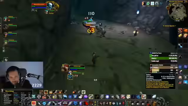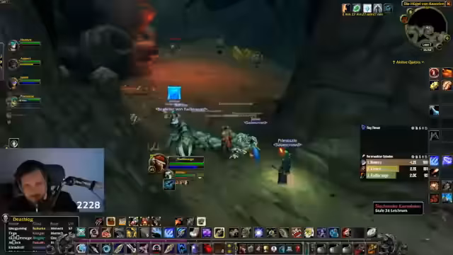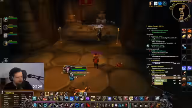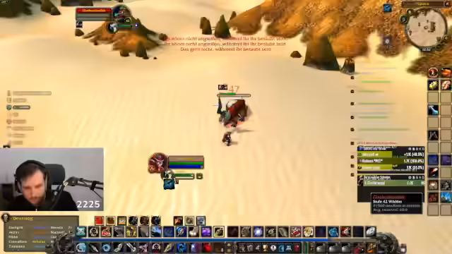 08:24:49Nach einem erfolglosen Versuch, einen Boss wegen Frostimmunität zu bekämpfen, konzentriert sich der Streamer auf Elite-Quests in Schlingendorntal. Er macht sich Sorgen über seine Leistung, insbesondere den geringen Schaden seiner Waffe, und plant, mit einem Hunter-Pad, der als fungierender fungiert, einen schwierigen Boss zu zweit zu besiegen. Die Gruppe trifft auf eine Horde-Patrouille, was zu einem PvP-Zwischenfall führt, bei dem ein Gegner schnell besiegt wird, was als gute Clip-Gelegenheit angesehen wird.