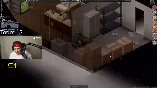 00:13:20Nach einleitenden Gesprächen und Interaktionen mit dem Chat beginnt der Streamer mit dem eigentlichen Gameplay von Project Zomboid, speziell im Modus 'Minus 70 Grad' und 'Super Winter', was extreme Kälte und hohe Überlebensschwierigkeiten bedeutet. Er startet mit einem bereits gefundenen Benz, was eine gute Ausgangsbasis darstellt. Der Streamer konzentriert sich darauf, in einem gefährlichen Umfeld mit vielen Sprinter-Zombies zu überleben, wobei er sich mit knappem Vorrat an Lebensmitteln und Ausrüstung begnügen muss. Er betont den Mangel an Loot in einigen Bereichen und die damit verbundenen Risiken bei der Erkundung.