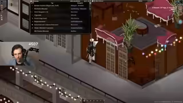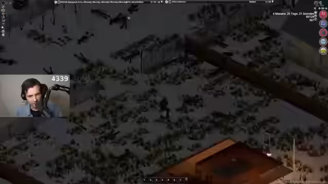 03:06:52Im Stream geht es hauptsächlich um die Fortschritte im Langzeitlauf von Project Zomboid. Das primäre Ziel ist das Erreichen von 100.000 Zombie-Kills, wobei aktuell bei 59.000 Kills und fast vier Monaten Überlebenszeit liegt. Als aktuelles Zwischenziel wird das Säubern der Stadt Brandenburg genannt. Der Streamer sammelt weiterhin Munition und lootet Ressourcen, stellt aber fest, dass Brandenburg besonders voll mit Zombies ist.