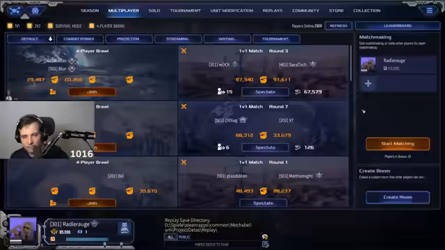 01:09:52Der Streamer setzt das Turnier fort und kämpft sich in der Rangliste nach vorne. Er erreicht den neunten Platz von 16 Teilnehmern. Sein Fokus liegt dabei auf der Lösung von taktischen Problemen, insbesondere gegen Spieler, die in späten Runden massenhaft Festungen oder andere starke Einheiten spammen. Er experimentiert mit verschiedenen Einheitenkombinationen, wie zum Beispiel Tarantulen und Snipern, um Feuerbadger zu kontern, und findet sich immer wieder in strategischen Dilemmata wieder, in denen er die richtigen Gegenmaßnahmen nicht findet oder zu spät handelt.