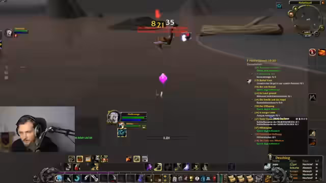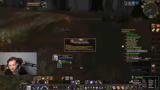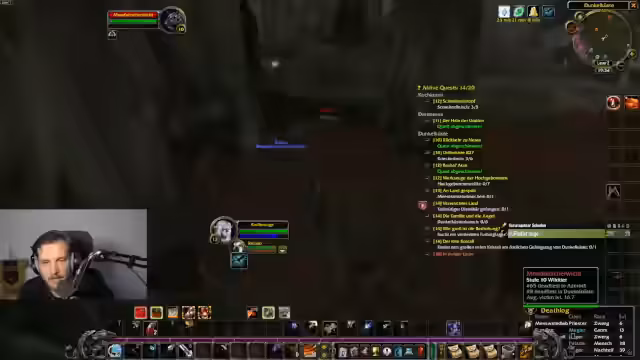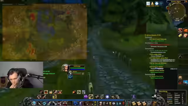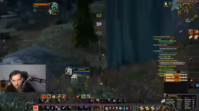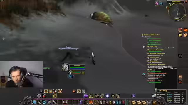 03:34:03Im Gebiet Loch Modan beginnt der Streamer systematisch mit dem Erledigen von Quests. Dabei tötet er Mobs wie Troggs und Steinpfote, sammelt benötigte Gegenstände und nutzt den Chat für Interaktion. Das Gameplay beschreibt er als entspannendes, soziales Erlebnis, das an das gemeinsame Grinden in alter erinnert. Er diskutiert zudem seine Fertigkeiten und das Respekten.