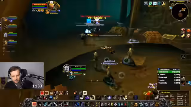 13:31:38Nachdem das Team vollzählig ist, betritt es den Dungeon Deadmines. Der Streamer hegt Respekt vor dem Dungeon und betont die Wichtigkeit langsamer, kontrollierter Züge (Pulls), um eine Wipe-Gefahr zu minimieren. Die Kommunikation ist entscheidend; der Streamer bittet den Tank um klare Anweisungen und den Heiler, ihn über den Beginn der Heilzauber (Weihe) zu informieren. Das Team startet vorsichtig und erkundet die Umgebung, während es versucht, alle Gegner zu säubern und die Questziele im Blick zu behalten.