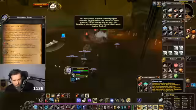 13:27:13Vor dem Dungeonbesprechung konzentriert sich der Streamer auf das Abschließen verbleibender Quests in der Umgebung, insbesondere eine Questreihe, die den Tod des Boot-Ausreißers beinhaltet. Er äußert den Bedarf an besserer Ausrüstung und ist auf der Suche nach spezifischen Items, wie dem Zauberstab von Cookie oder dem Brustteil von Edwin VanCleef. Das Team plant, den Dungeon systematisch zu absolvieren, wobei sie eine Questreihe mit fünf oder sechs Teilen durchgehen müssen, um alle Belohnungen zu erhalten. Das Management von Inventarplatz ist ebenfalls ein wichtiges Thema.