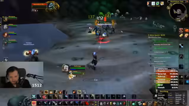 00:56:13Der Stream erfährt von mehreren Todesfällen in der Hardcore-Szene. Ein Charakter ist in Black Fathom Deeps (BFD) gestorben, ein weiterer ist von einer Brücke gesprungen und durch den Fallschaden im Wasser gestorben. Die Reaktionen darauf sind gemischt; während einige Todesfälle als schmerzhaft empfunden werden, wird auch die Entschlossenheit einiger Spieler gelobt, die trotz Rückschlägen weitermachen. Die Aufmerksamkeit gilt nun einer Gruppe, die Burg Schattenfang läuft.