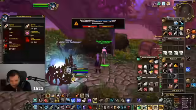 03:20:15Der Streamer beginnt mit der Vorbereitung für einen Instanzbesuch und schaltet seinen Endmute und Abfahrt-Modus ein. Er geht sein Inventar durch, um Gegenstände zu verkaufen oder zu sortieren, und stellt fest, dass er einige Gegenstände aufgrund eines Bugs nicht wegpacken kann, was ihn frustriert. Parallel dazu diskutiert er humorvoll über mögliche WoW-Thrombose-Strümpfe im Merchandise-Shop, was zeigt, wie er die Community und den Alltag einbezieht. Der Fokus liegt klar auf der anstehenden Instanz und der Organisation seiner Ausrüstung, während der leichte Ton für Unterhaltung sorgt.