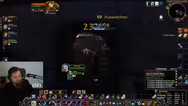 01:32:38Ein geplanter Raid degeneriert in Chaos und Streit. Es kommt zu technischen Verbindungsproblemen und unkoordinierten Aktionen, was zu Frust und Vorwürfen führt. Ein Spieler wird beschuldigt, die Gruppe durch falsche Aktionen zu gefährden. Der Streamer versucht, die Situation zu beruhigen und neue Spieler wie Radler einzuladen, um eine funktionierende Gruppe für den Raid Burg Schattenfang zu formieren. Der Ton ist angespannt und unkoordiniert.