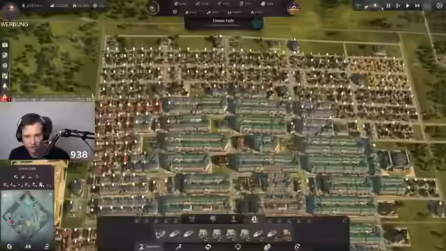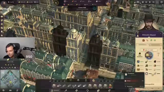 01:25:22Nachdem die benötigten Ressourcen wie Aufzüge und Zigarren endlich beschafft wurden, beginnt der Streamer mit dem Bau der zweiten Stufe der Magnatenhäuser. Die neuen Gebäude ähneln optisch dem Chrysler Building. Es werden jedoch anfängliche Probleme mit dem 'Panorama-Effekt' festgestellt, der von der Anordnung der umliegenden Hochhäuser abhängt. Der Streamer muss hier eine effizientere Anordnung planen. Parallel dazu kämpft er mit der Bedrohung durch die 'Prinzessin', die ihm den Krieg erklärt hat, und muss seine militärischen Kräfte weiter ausbauen, um seine Kerninseln zu schützen.