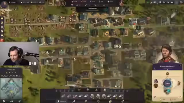 05:30:20Obwohl alle benötigten Güter produziert werden, bleiben die Zufriedenheitswerte der Magnaten konstant negativ. Streamer vermutet, dass dies an der komplexen Balance der Mod liegt, da die feineren Bedürfnisse bei weitem nicht alle auf dem ersten Bildschirm sichtbar sind. Dies stellt eine erhebliche Herausforderung dar. Gleichzeitig klagt Streamer über massive Performanceprobleme, die selbst auf Dreifachgeschwindigkeit kaum eine Verbesserung bringen und das Gameplay erheblich verlangsamen.
