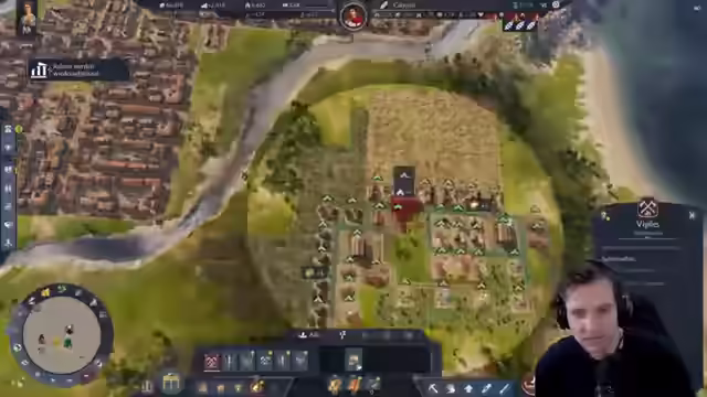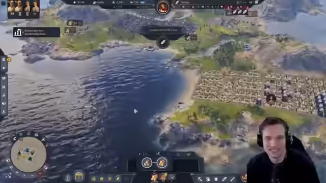 00:15:54Es wird eine entspannte Runde Anno gespielt, um die neue Tastatur mit F-Tasten zu testen und zu schauen, wie viele Einwohner auf die vierte Insel passen. Es wird kein voller Run gemacht, da es später mit der Throne and Liberty Kampagne weitergeht. Es wird aus dem Rocket Beans Headquarters in Hamburg gestreamt. Es wird die zweite Insel genommen, um zu testen, wie viele Einwohner darauf passen, idealerweise 10.000, um das Ziel von 100.000 Einwohnern zu erreichen. Es wird betont, dass es ungewohnt ist, mit neuer Maus und Tastatur zu spielen. Die Verlängerung der Demo ermöglicht Anno-Content im September und Oktober. Es wird ein Layout erstellt und ein Kredit aufgenommen, um frühzeitig bauen zu können. Die Demo ist auf unbestimmt verlängert und die Drops gehen bis zum 13.10.