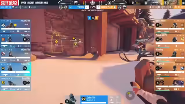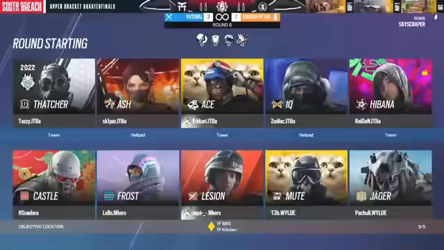 03:56:10Das Spiel auf Chalet beginnt mit einem Abtasten beider Seiten. Sons of Peter verteidigt aggressiv und versucht, die Angreifer mit einem breiten Aufbau zu zwingen, mehr Zeit zu verlieren. Yotoru nutzt effektiv ihre Drohnen, um Informationen über die Verteidigerstellung zu sammeln. Die Runden verlaufen chaotisch, mit schnellenwechselnden Vorteilen. Sons of Peter kann die erste Runde für sich entscheiden, während Yotoru im zweiten Zug punktet, was ein ausgeglichenes Spiel andeutet. Der Fokus liegt auf cleverem Camperstellen und dem Lesen des Gegners.
