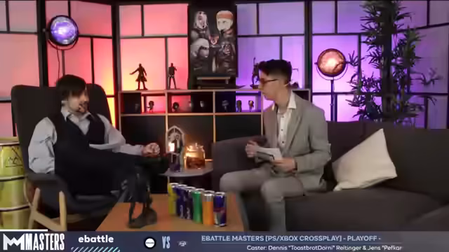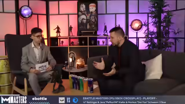 01:14:28Nach dem 5:1-Halbzeitstand für E-Wave analysieren die Kommentatoren den Spielverlauf. Votum Gaming fand sich besser in der Verteidigung wieder. E-Wave zeigte ein starkes Comeback bis zum 6:4 und matchball durch den Einsatz der Saugglocke. Votums Führung ging verloren, weil man eine entscheidende Flanke unbeaufsichtigt ließ, was einen umgekehrten Impact-Track bedeutete.