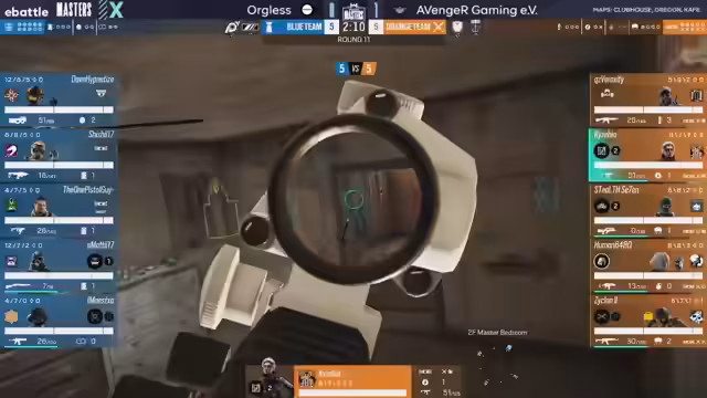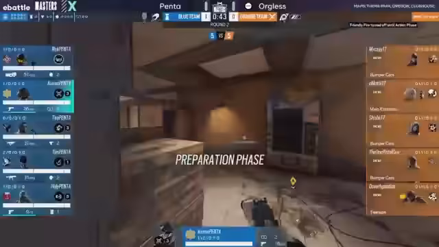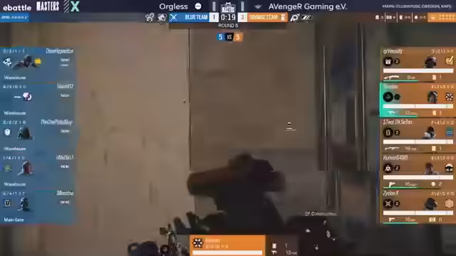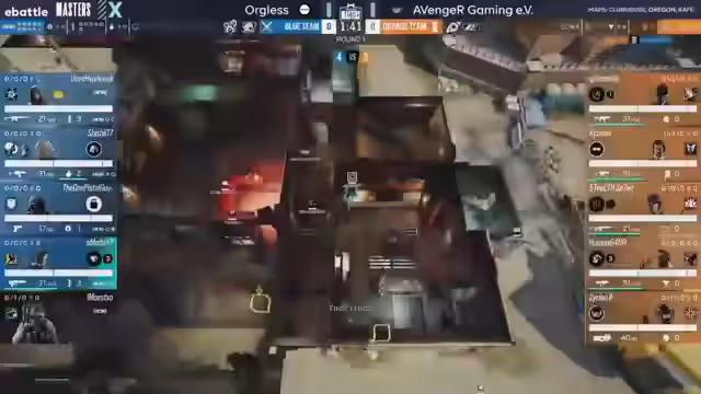 02:47:17Für die Map Oregon wechselte Orkless das Operator-Lineup, tauschte Maverick gegen Nomad aus, um mehr Flexibilität zu bekommen. Avenger Gaming startete aggressiv und arbeitete mit einem schnellen Spielstil. Allerdings misslang der schnelle Aufbau in den ersten Runden, da wichtige Wände nicht rechtzeitig verstärkt wurden, was die Angreifer in unangenehme Überzahlzwänge brachte.