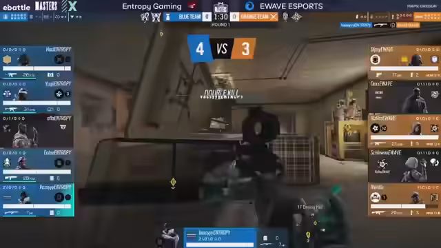 05:10:25Die ersten Runden des Finales zeigen einen klaren Start für Entropy Gaming. Der Operator-Picks der Teams wird analysiert: Entropy setzt auf Ying, Nook, Sols, Valkyrie und einen schweren Operator, während E-Wave mit Monty, Iana und weiteren Einheiten antwortet. Die Kommentatoren sehen Valkyries Vision als entscheidenden Faktor und loben den starken Start von Entropy. Der frühe Verlust eines E-Wave-Spielers durch den Monty wird als suboptimal bewertet, während der "Killerente" von Entropy als Spielentscheider hervortritt und die erste Runde für sein Team holt.