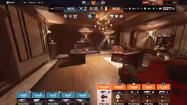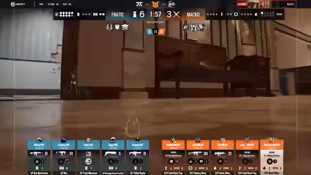 05:26:00Das Spiel auf Kafe beginnt mit spannenden taktischen Aufbauen. Beide Teams nutzen spezielle Fähigkeiten von Operatoren wie Aruni und Maestro, um Informationsvorteile zu erlangen und das Schlachtfeld zu kontrollieren. Fnatic zeigt in der Defense durch den cleveren Einsatz von Kameras und cleveres Positionieren, wie man Überzahlsituationen effektiv verteidigen kann. In der Offensivphase der Attack-Seite wird gezeigt, wie die Zeitverzögerung und gezielte Ablenkung zur Durchführung des Angriffs genutzt werden. Ein früher Timeout von Machiko nach der ersten Runde deutet auf notwendiges Besprechen an, da das Team anfänglich Schwächen in der Kommunikation und den Positionen zeigt.