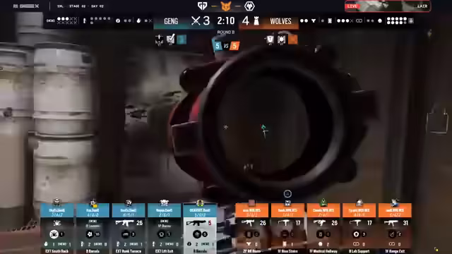 01:04:50Nachdem Gen.G. scheitert, in das Obergeschoss einzudringen, nutzen die Wolves die Gelegenheit, um ihrerseits konternd anzugreifen. Tyrant sorgt für einen Double-Kill, und Nudel schaltet den letzten verbleibenden Gegner aus, wodurch die Wolves die Runde für sich entscheiden und in der Gesamtwertung in Führung gehen.