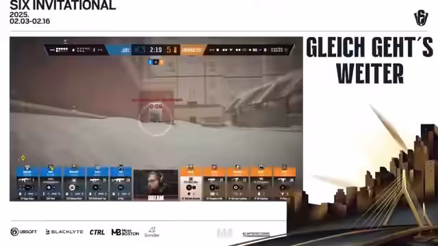 10:24:53Nach der Analyse des Spiels Oxygen gegen Skars wurden die Kommentare durch Ankündigungen anderer Turniere unterbrochen. So wurde auf das T2 European Final mit 15.000 Preisgeld hingewiesen, an dem bekannte Teams wie Project X und Team Secret teilnehmen werden. Zusätzlich wurde erwähnt, dass das Rainbow Six E-Sports Circuit weiterhin im Fokus stehen wird und Fans auf zukünftige Events achten sollten.