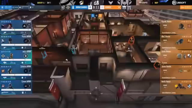 01:12:45Aufgrund des hohen Rückstands zieht Heroic einen Timeout, um sich strategisch neu aufzustellen. Die Analyse im Stream offenbart, dass M&M Gaming bisher insbesondere durch das Aufstellen von Schilden in Bottleneck-Bereichen wie Drums dominieren konnte. Heroic muss nun Wege finden, diese Aufbauten zu umgehen oder gezielter zu kontern, um in die zweite Hälfte zu finden.