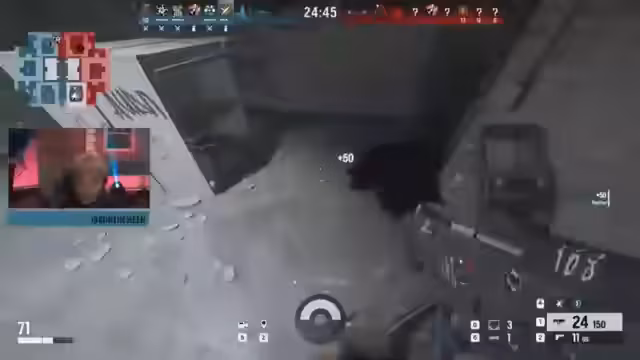 01:06:49Der Stream beginnt mit intensiven Gameplay-Sequenzen des neuen 6v6-Modus 'Dual Front'. Es wird beschrieben, wie beide Teams aggressiv vorgehen und sich auf zwei Fronten gleichzeitig konzentrieren müssen. Kommentiert wird das Frack-heavy Gameplay und die strategische Entscheidung zwischen Attack und Defense. Wichtige taktische Elemente wie das Zerschießen von Feuerlöschern werden erläutert, die sowohl als Rauchvorhang als auch als Konkussionswaffe dienen und neue Möglichkeiten für Angriffe und Verteidigungen eröffnen.