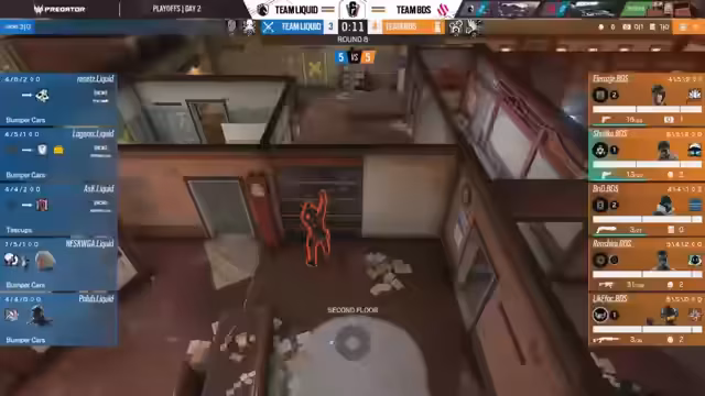05:25:37Clubhouse wird nun gespielt, eine stark verteidigungslastige Map mit 58% Winrate aus der Verteidigung. Liquid hat diese Map gepickt, hoffend auf eine bessere Attack als auf Chalet. BDS muss aufmerksam sein, nicht leichtfertig zu agieren und die Map zu verlieren, was ihr Ausscheiden bedeuten würde. Das Spiel zeigt eine gelungene Informationsstrategie von Teams, die Drohnen einsetzen und sich Winkel sichern.