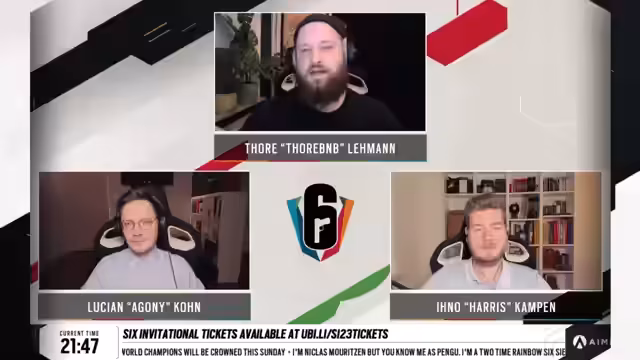 00:32:37Der zweite Tag der Sixth Invitational 2023 beginnt mit dem vierten Best-of-Drei an diesem Tag. Der Streamer Pingu begrüßt seine Co-Kommentatoren Lucian Argonikon und Eno Harris-Kampen als 'Legenden-Duo'. Nach einer kurzen Nacht mit bereits vielen spannenden Spielen wird auf die heutige Partie von vier Matches eingestimmt, darunter Heroic gegen Space Station Gaming, G2 gegen FaZe Clan, Sonics gegen Astralis und BDS gegen Liquid.