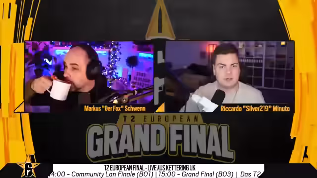 00:03:25Der Stream beginnt mit der Ankündigung der T2 European Grand Finals, bei denen Team Secret AC auf Projekt X trifft. Matchco wird als dominanter Gewinner des ersten Tages hervorgehoben, der sich für das Finale qualifiziert hat und nun die Möglichkeit hat, gegen den Gewinner des aktuellen Spiels anzutreten. Die Stimmung wird als explosiv und voller Spannung beschrieben, und ein kurzer Überblick über die gestrigen Ergebnisse gibt den Zuschauern einen Einblick in die Turnierlage.