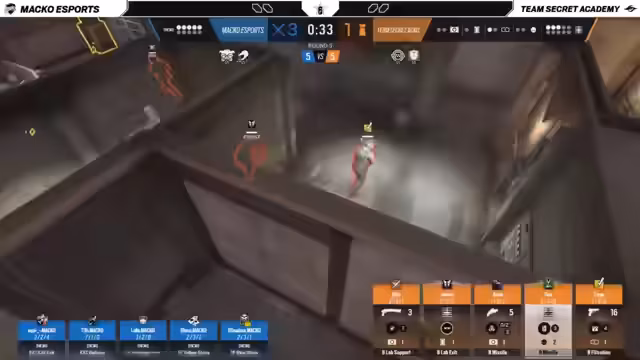 05:22:19Nachdem Team Secret Academy den Ausgleich geschafft hat, macht Mako eSports durch eine disziplinierte Verteidigung den Rückstand wett und sichert sich eine 5-3 Führung. Die Defense von Mako arbeitet extrem koordiniert und nutzt vertikale Positionen sowie Bulletproof-Camps, um Secret effektiv in Schach zu halten. Secret Academy zeigt in der Offensive jedoch weiterhin Schwächen und lässt durch zu voreiliges Handeln wichtige Chancen ungenutzt.