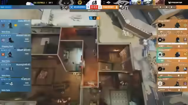 05:30:13Secret verzichtet auf Montagne und setzt auf einen All-In-Standard mit Nook. Wolves macht Tempo und öffnet Hedges, wobei Mowgli bei Construction gefrackt wird. Deadshot nimmt zwei Leute mit, was typisch für Wolves ist. Secret geht langsam in Richtung Hold, um ein Reflex-Spiel zu vermeiden. Bibu sichert doppelte Manpower, aber es hätte früher Veränderungen geben müssen. Wolves lernt mit dem Game. Ein schöner Versuch von Secret scheitert an Schinker. Groovy steht alleine und wird von Bibu rausgenommen. Ein Flank wird verhindert, da eine Camp bei den Mainstairs platziert ist. Wolves besinnt sich darauf, das Spiel ordentlich voranzutreiben und vermeidet ein Umfallen. Es war ein wunderschönes Match. Der Approach über Construction ist valide, da eine offene Wall von Cash vorhanden ist. Das CC-Breach wird aufgekriegt. Wolfs gewinnt gegen White. Es folgt eine kurze Pause und dann ein Interview.