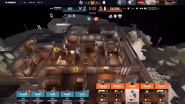 01:02:04Die Runden zeigen eine breite Nutzung von Operatoren und Taktiken. BDS setzt auf Vorbereitung mit Drohnen und Utility, um Informationen zu sammeln und den Gegner zu kontrollieren. Falcons reagieren mit intelligentem Operator-Einsatz, etwa mit Deimos für Tracking und Montagne für objective Pushes. Besonders hervorgehoben wird die Rolle von Spielern wie Shaiko, der mit Deathmark-Tracker arbeitet, und die Fähigkeit von Falcons, nach einem frühen Push das Tempo anzupassen und gezielt Utility zu nutzen.