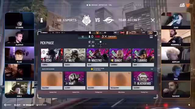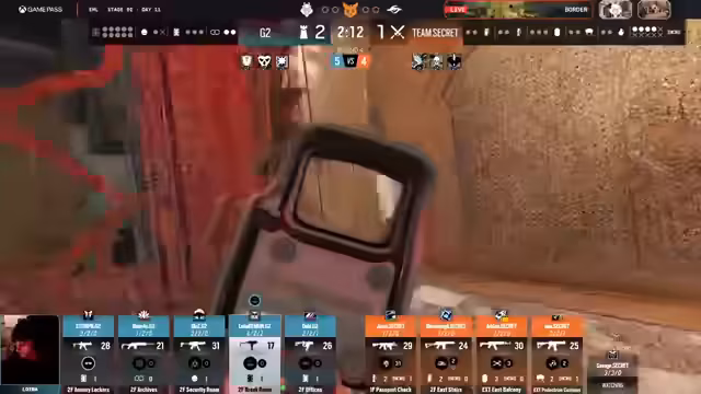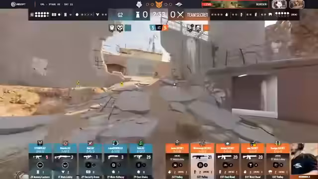 04:32:49Der erste Best-of-3-Match der Playoffs zwischen G2 und Team Secret startet auf der Map Border. Die Vorhersagen im Chat sind knapp, wobei G2 mit 66% als Favorit gewertet wird. Die erste Runde beginnt mit G2 in der Defense und Secret in der Attack. Es wird festgehalten, dass Team Secret in der Attack starke Shield-Operatoren wie Montagne besitzt, weshalb diese im Ban-Prozess teilweise priorisiert werden, um der Dominanz von Spielern wie Savage entgegenzuwirken. Die Runde ist von schnellen Frags und strategischer Positionierung geprägt, wobei G2 sich durch geschickte Plays durchsetzt.