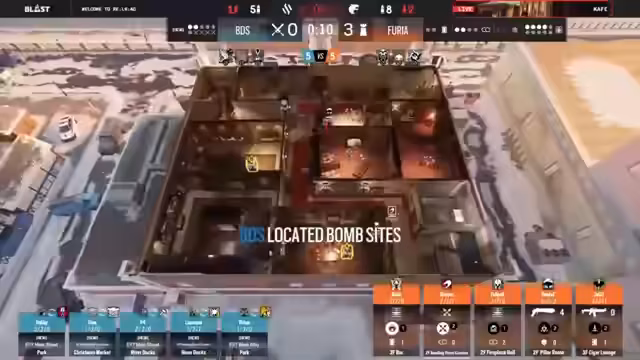 03:17:51Beide Teams passen ihre Strategien während des Matches an. Furia wechselt zu einem defensiveren und auf Intel fokussierten Ansatz mit Maestro und Goyo, was sich als sehr effektiv erweist. Auch BDS reagiert, indem sie Operator wie IQ einsetzen, um die Gadgets von Furia aufzudecken. Das Spiel ist eine taktische Abwechselung, in der Furia jedoch im entscheidenden Moment die Überzahl-Situationen besser ausspielt und durch kluge Platzierung von Utility wie Kapitano-Bolzen vertikale Angriffe unterbindet.