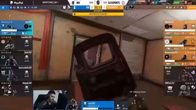 01:38:58Koi setzt auf Infoplay, verliert aber schnell Zeit und Drohnen. Doki erzielt einen Headshot, wodurch eine 3-gegen-5-Situation entsteht. Benja von Koi verzögert einen Angriff, was wertvolle Zeit kostet. G2 spielt die Zeit geschickt herunter und gewinnt die Runde. Es wird kritisiert, dass Koi zu passiv agiert und der Druck auf G2 fehlt. G2 ist das dominantere Team und Koi scheint ratlos. In Runde 6 wird Benja unterschätzt, was zu einem weiteren Verlust für Koi führt. Doki erzielt weitere Kills und G2 führt mit 5-1. Koi nimmt eine Auszeit, um ihre Strategie anzupassen. G2 gewinnt weitere Runden und führt schließlich mit 6-1. Doki erzielt fast eine 5-0-KD. Koi gelingt es, eine Runde zu gewinnen, aber G2 dominiert weiterhin. Die Map Villa ist Kois Pick, aber sie werden von G2 überrollt. Es wird vermutet, dass Koi sich auf die nächste Map, Clubhouse, konzentrieren sollte.