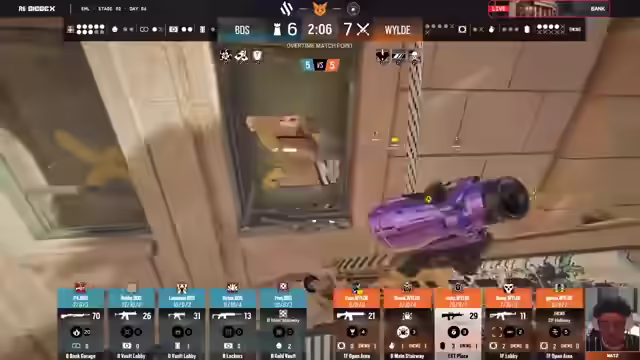 01:51:01Nach einer intensiven Runde werden einige Schlüsselfragen aufgeworfen. Eine aktive Kamera in der Garage lieferte Informationen, dennoch agierte BDS in der Defensive zu exponiert. Der Monty war zu weit vorne aktiv und wurde schnell eliminiert. Die anschließende 2-gegen-2-Situation wurde von BDS entschieden. Es folgt eine kurze Thematisierung von Sniper Operatoren wie Glass und Kali, insbesondere auf der Karte Bank, die aufgrund ihrer Fenster und langen Distanzen prädestiniert dafür wäre. Glass wird aufgrund seiner Smokes als nützlich erachtet, um sich vorzutäuschen und den Smoke zu kontrollieren, unterstützt durch einen Monte mit Smoke Grenades. Eine Kali wird in dieser Situation eher kritisch gesehen. Es wird festgestellt, dass das Team bereits über DKB, Laien mit DMA und möglicherweise Twitch mit DMA verfügt. Die schnellen Winkel auf der Karte machen den Einsatz von Kali schwierig.