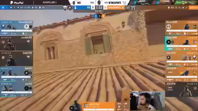 05:16:57Die Kommentatoren analysieren die Bannphase für die Map Villa. W7M bannt Ying, um das Einnehmen bestimmter Räume zu erschweren, während Koi Valkyrie bannt. Die Kommentatoren fragen sich, warum Echo nicht gegen Koi gebannt wird, da Deepak diesen Operator häufig spielt. Sie spekulieren über die Gründe für den Dokebi-Bann durch Koi. Keyes erzielt einen frühen Frack, aber Hurts kontert. W7M behält die Überzahl und kontrolliert wichtige Positionen. Ein Runout von Deepak wird als riskant bewertet, da er die Überzahl nicht sichern konnte. Kanto und Spoilt bewegen sich in Richtung Astro Stairs. W7M startet gut in die zweite Map. Wolffs wird auf dem Spielfeld entdeckt und eliminiert, während Kanto isoliert ist. Hurts dominiert und sichert die Runde für W7M. Koi verliert wichtige Vision-Operatoren und kann nicht mehr vertikal spielen. Aggressives Positioning von Koi scheitert, und W7M überrennt sie.