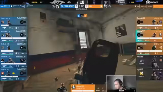 02:40:50Die Overtime beginnt, und die Rollen bleiben gleich. Die Defense scheint für Koi besser zu funktionieren, da weniger Koordination erforderlich ist. Secret ist auf dem Weg in den Topfloor und will das Ganze von oben nach unten durchklären. Miracle dodged eine C4 und eine Nate. Secret spielt es cool runter und nimmt Bereiche ein, die Koi ihnen zur Verfügung stellt. Koi zieht sich Stück für Stück zurück. Miracle wird rausgenommen, und Savage nimmt sich ebenfalls einen Jigsaw raus. Eine Nate und Savage sorgen für ein Follow-up. Secret zeigt einen sehr sauberen Execute. Es fliegen viele Explosives, und die Follow-Ups lassen nicht lange auf sich warten. Team Secret sichert sich den Overtime-Matchpoint. Koi muss sich in der Attack raffen. Es wird gehofft, dass ein Thatcher zum Einsatz kommt. Savage nimmt sich die Pack raus, und es gibt keine EMPs mehr. Secret lässt sich zurückfallen und hat alles erreicht, was sie wollten. Den Opening auf D-Pack, Zeit gekostet und selber keinen Mann verloren. Den Gitz nutzt zwei und dann Zermas erst mal an der Hedge von der Bar. Miracle sorgt mit dem C4 für einen weiteren Kill. Secret spielt ein Bilderbuch Rainbow Six Siege auf dieser Map. Jigsaw ist im Rauch gefangen. Secret nimmt sich den verdienten Sieg mit. Koi erhält immerhin einen Punkt. Beide Teams haben eine starke Entwicklung gezeigt. Team Secret hat den Sieg verdient, konnte ihn aber nicht in der regulären Spielzeit sichern. Beide Teams haben stark performt. Deepak hat einen guten Job gemacht, und Savage hat seinen Job extrem gut gemacht. Team Secret war das bessere Team, weil sie das Spiel simpel gestaltet haben. Koi konnte sich mehr auf sich als Team konzentrieren, während Secret mit Standard-Strategien und Standard-Plays gearbeitet hat.