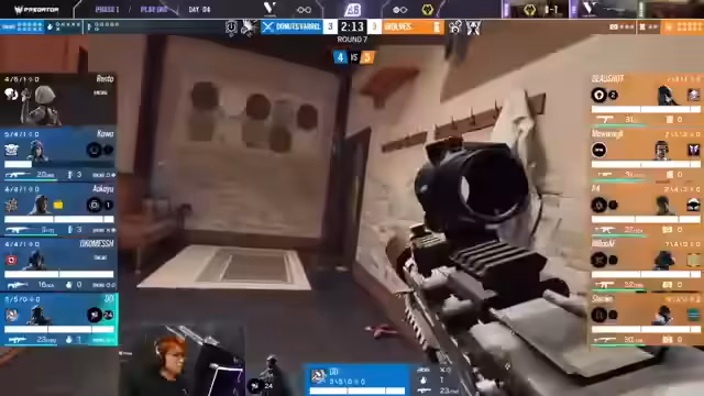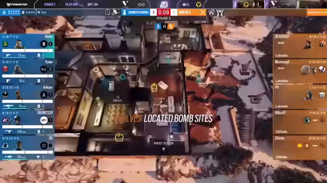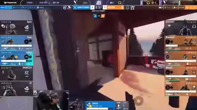 04:04:23Nachdem sie den Anschluss gefunden haben, versucht Wolves mit einer neuen Strategie auf der Map Chalet. Es wird vermehrt vertikales Gameplay betont, um die Kontrolle von oben nach unten zu gewinnen. Man sieht vermehrt den "Mira Run" und Angriffe über die Big Door. Diese neue Taktik scheint zu funktionieren, da es Wolves gelingt, den Topfloor einzunehmen und Runden sicherzustellen.