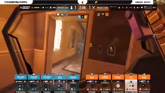 04:13:43Nach der deutlichen Niederlage auf Border wechselt das Match zur zweiten Map 'Consulate'. Diese Map ist für beide Teams eine 'Blackbox', da sie sich in den letzten vier Wochen nicht darauf getroffen haben. Für Team Secret ist dies eine neue Chance. Der Fokus liegt auf der strategischen Nutzung von Drohneninformationen und der Kontrolle über den 'Todes-Hallway', der das Spiel maßgeblich beeinflussen kann.