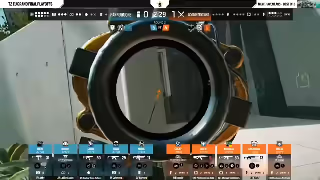 01:49:17Nach der knappen Entscheidung auf Nighthame Labs wechselt das Match zur zweiten Map, Bank, dem Map-Pick von Panahoune. Die Kommentatoren erwarten von ihnen nun einen aggressiveren und entschlosseneren Spielstil, da es sich um ihre gewählte Map handelt. Good Intentions hingegen muss beweisen, dass sie auch auf einer für den Angreifer begünstigten Karte bestehen können. Die erste Runde auf Bank verlägt für Panahoune ideal, Lambe gelingt ein beeindruckender 180-Grad-Schuss, und das Team nutzt einen Blitzangriff, um schnell und aggressiv vorzugehen.