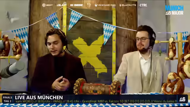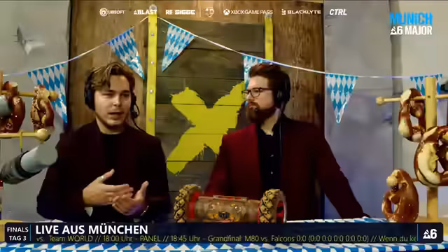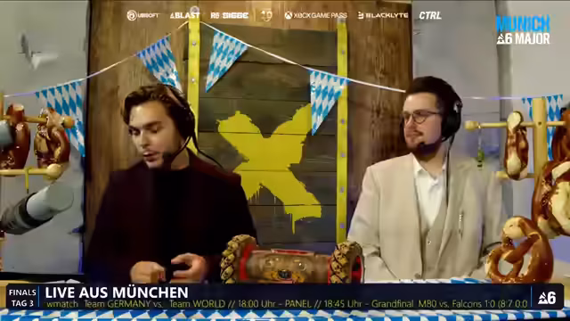 00:00:01Der Grand Final Tag des München Majors in der BMW Park Arena beginnt mit einer herzlichen Begrüßung durch die Kommentatoren Million und Korridor. Sie kündigen einen vollgepackten Tag an, der mit einem Show-Match startet, bei dem zwei besondere Caster das Publikum begleiten werden. Anschließend folgt ein Reveal-Panel, das bereits auf den Social-Media-Kanälen für Aufsehen gesorgt hat. Das große Finale wird zwischen Falcons und M80 ausgetragen, wobei die Energie der M80-Fans am Vortag als unfassbar beschrieben wurde. Falcons, als EU-Team, hat die meisten Fans und steht zum fünften Mal im Finale, nachdem sie die letzten vier Male verloren haben. Es wird gehofft, dass sie es dieses Mal schaffen. Der Zeitplan sieht vor, dass nach dem Show-Match um 18 Uhr das Reveal-Panel stattfindet und um 19 Uhr das Grand Final beginnt.