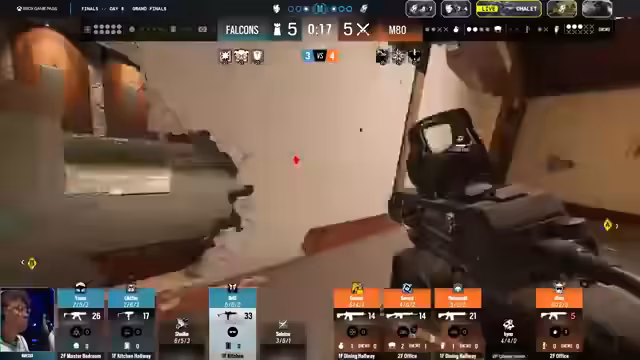 06:06:12Jede Runde entwickelte sich zu einem Krimi, oft bis in die 1-gegen-1-Situationen, was die Zuschauer begeisterte, aber die Kommentatoren an ihre Grenzen brachte. Das Vertikalspiel und die Nutzung von Granaten waren entscheidend, wobei ein beinahe erfolgreicher Plant-Versuch die Spannung aufrecht hielt. Aus Falcons-Sicht war es schade, da Jusos die Top-Fall-Kontrolle erarbeitet hatte, was zu einer 2-1-Situation führte. Die Informationsgewinnung auf beiden Seiten war 'insane', insbesondere durch Operatoren wie Brava und Twitch auf Chalet, die stets neue Möglichkeiten eröffneten. Die Teams nutzten Keeper Barriers, um Fensterprobleme zu lösen und Druck aufzubauen. M80 schaffte es, die Runde zu closen und den Map-Punkt auf Chalet zu erreichen, was für die Falcons bitter war, da sie die Map gut vorbereitet hatten. Die präzise Drohnenarbeit von M80, die Positionen der Falcons-Spieler aufdeckte, war entscheidend. M80s Fokus auf Überzahlsituationen und das Umwandeln von Informationen in Kills war beispielhaft. Die Falcons zeigten jedoch weiterhin Präsenz und Kontrolle, was zu einer weiteren Overtime führte.