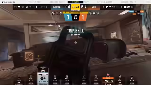 04:29:30Die Falcons zeigen eine bemerkenswerte Fähigkeit, ihre Gegner durch gezielte Positionswechsel und den effektiven Einsatz von Utility zu verlangsamen. Trotz eines anfänglichen Rückschlags auf der Karte Skyscraper, bei dem M80 eine wichtige Runde für sich entscheiden konnte, lernen die Falcons schnell und passen ihre Strategie an. Die Entscheidung, einen Operator wie Glaz zu bannen, erweist sich als richtige Reaktion auf dessen vorherigen hohen Schaden. M80 reagiert ebenfalls mit einem strategischen Ban von Solis, was auf ähnliche Motive hindeutet, die Präsenz bestimmter Operatoren auf der Karte zu reduzieren. Die Einführung von Clash mit zwei Schilden auf Seiten von M80 zeigt den Versuch, einen perfekten Counter zu etablieren, was zu aggressiven und dynamischen Engagements führt, bei denen Granaten gezielt eingesetzt werden, um die Clash aus ihrer Position zu drängen und den Weg für Angreifer freizumachen.