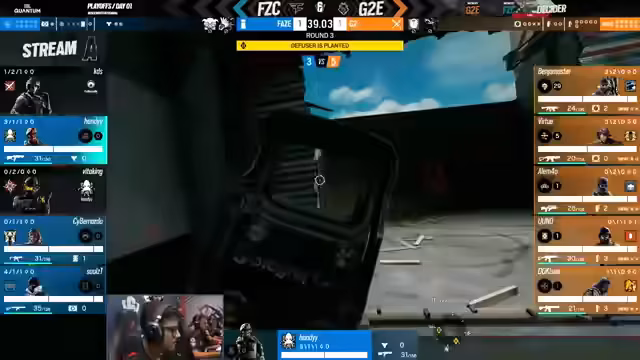 06:26:47Die erste Runde auf Kaffee Dostoyevsky beginnt mit FaZe Clan in der Verteidigung. Sie wählen einen Offsite-Start, wobei sie sich auf Library und Fireplace konzentrieren. G2 hingegen nimmt sich Zeit, um den Upper Floor auszudrohen und Informationen über roamende Verteidiger zu sammeln. FaZe Clan ist auf alles vorbereitet und reagiert auf das Gameplay von G2. G2 arbeitet sich über den Top-Flow nach unten und versucht, die Verteidiger zu isolieren. FaZe Clan gewinnt die erste Runde, indem sie konzentriert spielen und die Rotationen von G2 unterbinden. Die Experten analysieren die Strategien beider Teams und stellen fest, dass FaZe Clan den Angriff von G2 gut antizipiert hat. In der zweiten Runde versucht G2, mit frühen Aggressionen zu punkten, während FaZe Clan mit Repels versucht, Zugriff in Richtung der Spots zu bekommen. G2 gleicht aus, indem sie Echo und Nomad ausschalten. Die Experten loben die Aufbauten von FaZe Clan und ihre Fähigkeit, die Aktionen von G2 vorherzusehen. FaZe Clan geht mit 2-0 in Führung, obwohl G2 eigentlich alles richtig macht. FaZe lässt sich sehr viel Zeit in den Attacks. G2 ist sehr disziplinierend. Auf den Execute verliert G2 das Spiel.
