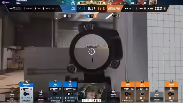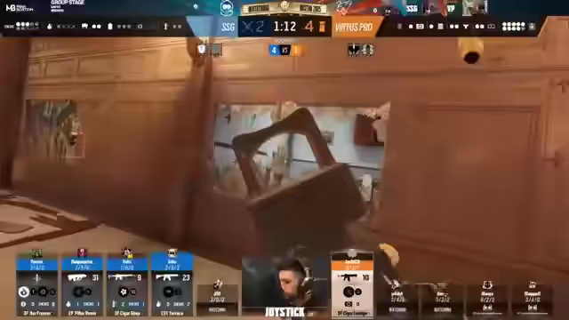 07:40:35SSG wechselt in die Angriffsphase und zeigt ein aggressives, aber unkoordiniertes Line-up mit Operatoren wie Amaru, Blitz, Sens, Deimos und Ram. Diese soll Chaos und Verwirrung stiften, das Timing ist jedoch unsicher. Virtus.pro verteidigt methodisch und nutzt die Informationssammlung via Drohnen effektiv. Sie legen sich in eine aussichtsreiche Position und warten auf den richtigen Moment zum Kontern. SSGs aggressiver Ansatz führt zu Chaotic Plays, wobei Spieler zu schnell sterben und keine Rückendeckung erhalten. Virtus.pro nutzt diese Disziplin und cleares die Bombenstellen, um die Runden für sich zu entscheiden.